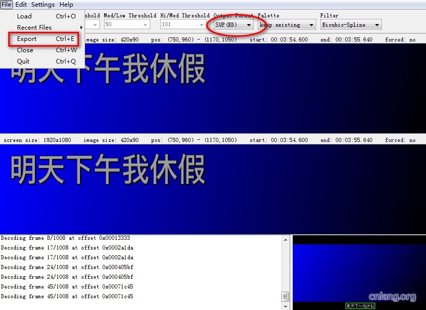 9headsbird 发表于 26-2-25 17:41 打开bdsup2sub,操作步骤如图.(此方法只适合纯Sup字幕,特效字幕不适用)